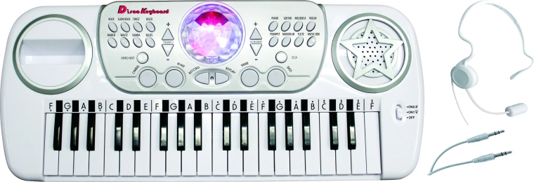 Uživajte v glasbi in svetlobnih efektih s temi klavirskimi tipkami z disko kroglo in mikrofonom. Idealno za male glasbene talente in ljubitelje zabave.
