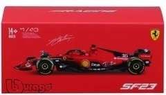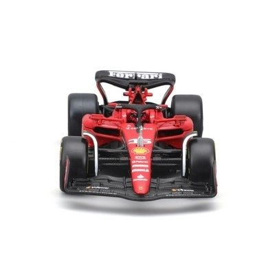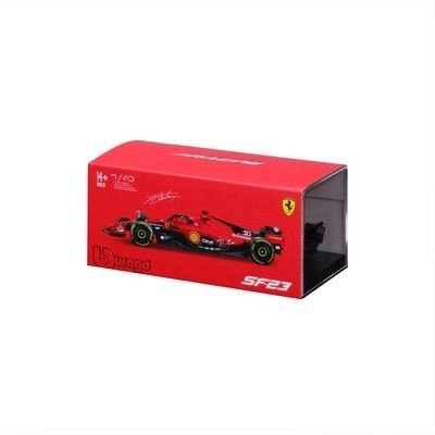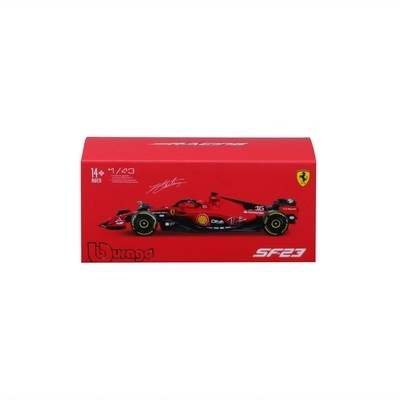 Zvesto barvno oblikovanje FERRARI SF23 s sponzorskimi logotipi, halo zaščito in natančno izdelanimi krili daje modelu realističen videz pravega enosedežnika.
