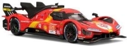Ta podroben die-cast model zvesto prikazuje prototip kategorije LMH Ferrari 499P, ki je zmagal na legendarni dirki 24 ur Le Mansa 2023. Realistična razmerja, ostre linije karoserije in avtentični dirkaški elementi naredijo model privlačen kos za vitrino.