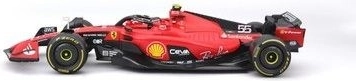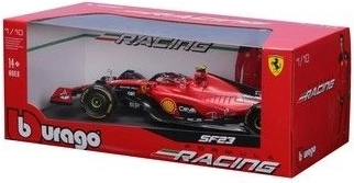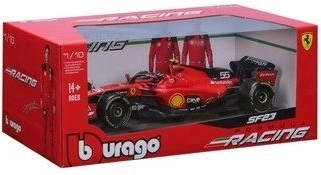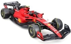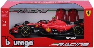 Uradno licenciran kovinski model Bburago v merilu 1:18 verno prikazuje enosedež Scuderia Ferrari SF-23 (2023) s startno številko 55. Vključena je figurica Carlosa Sainza, pristno moštveno barvanje in natančni detajli – idealno za zbiratelje in oboževalce Formule 1.