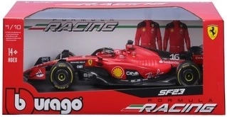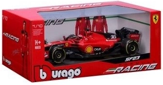 Podroben kovinski model formule F1 v merilu 1:18 znamke Bburago zvesto prikazuje bolid Ferrari Scuderia SF-23 iz sezone 2023 z dirkačem Charlesom Leclercom. Zahvaljujoč natančni izdelavi, realističnim detajlom in uradni Ferrari licenci je idealen za zbiratelje in navijače F1.