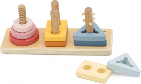 Leseni koščki in količki učijo prepoznavati oblike in barve, podpirajo prostorsko razmišljanje ter logično razvrščanje. Idealno za prve korake v geometriji.