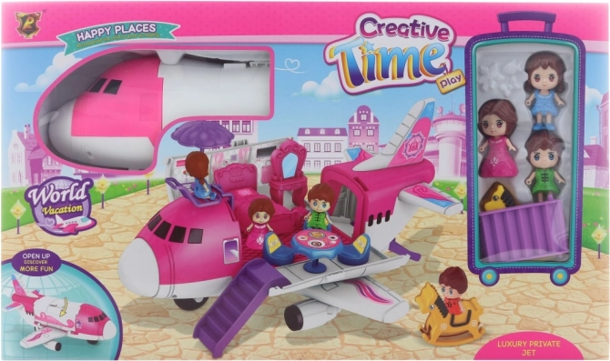 Zložljivo letalo z dodatki združuje svet potovanj in domače igre v enem. Po odprtju se letalo spremeni v prijetno hišico z opremo, kjer lahko otroci ustvarjajo lastne zgodbe ter razvijajo domišljijo in fino motoriko.