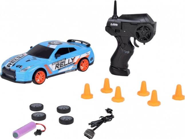 Del kompleta so tudi trening stožci za postavitev slalomskih ali drift prog, polnilni akumulator 3,7 V in polnilnik. Kompaktne mere vozila (dolžina 18 cm) ga naredijo odlično izbiro za začetnike in izkušene voznike.