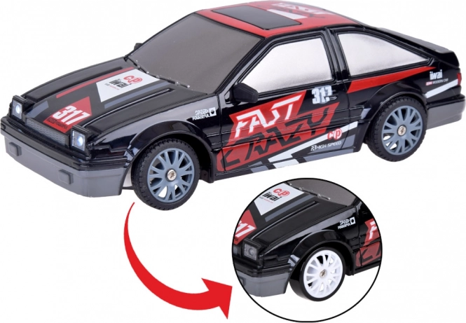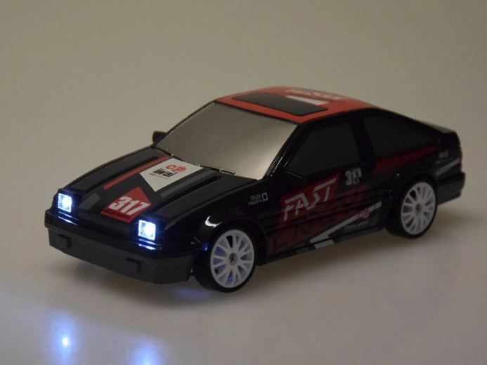 Stilski dirkalni RC avto je zasnovan za hitro vožnjo in drift. Realistična razmerja v merilu 1:24 ter lahka konstrukcija zagotavljajo odzivnost in odlično vodljivost. Upravljalnik na frekvenci 2,4 GHz odpravlja motnje in omogoča gladko upravljanje naprej/nazaj ter zavijanje desno/levo.