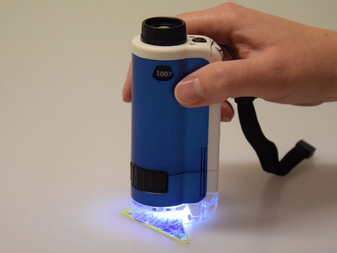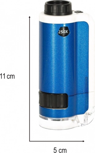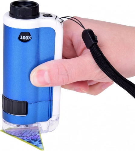 Ta prenosni mikroskop vam omogoča preprosto raziskovanje listov, kril žuželk, čebulne povrhnjice, pikslov zaslona in še mnogo več – edina meja je vaša domišljija. Preprosto ostrenje in integrirana LED lučka zagotavljata čisto in ostro sliko tudi pri večji povečavi.
