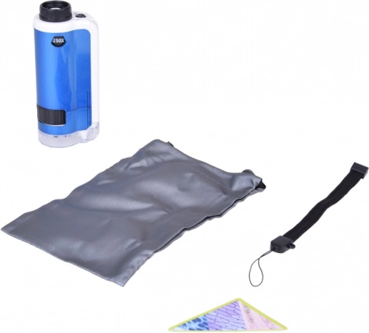 Zaradi kompaktnih mer se prilega v žep, medtem ko praktičen pašček in tekstilna vrečka olajšata prenašanje in ščitita napravo. Odlična izobraževalna pripomoček za šolo in zabavna znanstvena igrača za male raziskovalce.