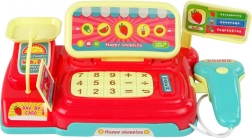 Otroška blagajna je odlična pomoč za male trgovce. Izdelana je v rdeči barvi z rumenimi elementi. Glavna naloga blagajne je simulacija resničnih nakupov, kar otrokom omogoča razumevanje postopka nakupovanja. Zabaven način podpira razvoj komunikacije in socialnih veščin.