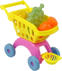 Vključuje nakupovalno košarico z rumenim košem in plastičnim sadjem, odlično za igro na nakupovanje.