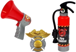 Ta čudovit gasilski set vsebuje vse, kar mali gasilec potrebuje za reševanje ljudi in živali. Nahrbtnik je opremljen z rumenimi odsevnimi elementi in manjšimi žepi za shranjevanje potrebne opreme. Ročno napolnjljiv razpršilnik v obliki gasilnega aparata je odličen interaktivni element, medtem ko megafon omogoča sporočanje pomembnih informacij. Prenosna svetilka osvetli temne kotičke, značka pa poskrbi za avtentičnost.