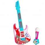 Glasbeni komplet za otroke vsebuje kitaro in mikrofon v živih barvah s prelepimi motivi metuljev in vrtnic. Kitara je opremljena z modrimi strunami, gumbi za glasbene učinke in funkcije. Dovolj je držati gumb za vklop funkcije melodij in osvetlitve. Mikrofon s holografskimi elementi in enostavnim oprijemom vsakemu nastopu doda profesionalen pridih.