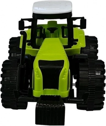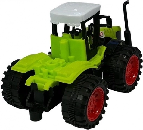 Zeleni traktor z belo streho in velikimi kolesi zmore vsak “poljski” opravili. Odlična osnova za priklapljanje dodatnih nadgradenj.