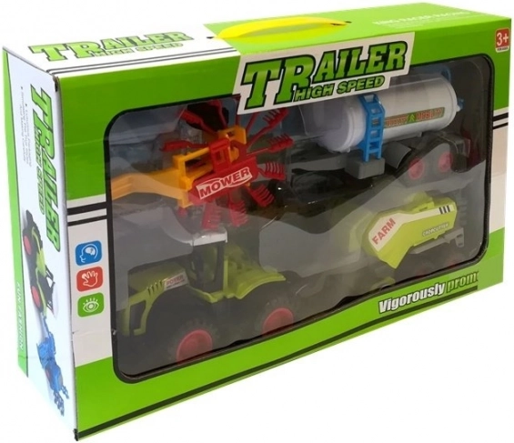 Kmečki komplet vozil s traktorjem, cisterno, grabljalnikom sena in balirko