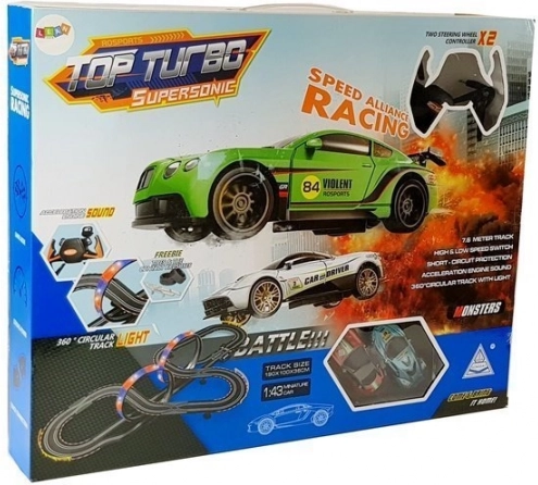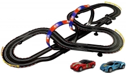 Uživajte v dolgih urah napetih dirk! Ta električna tekmovalna steza združuje tekočo vožnjo, efektne zanke in dinamične svetlobne učinke. Dva avtomobilčka v merilu 1:43 (rdeč in moder) omogočata pošteno dirko dveh igralcev hkrati, medtem ko nadzorna enota z jasnimi stikali zagotavlja udobno upravljanje.