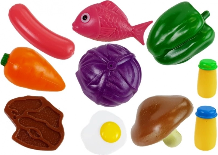 Del kompleta so tudi različne vrste živil, ki spodbujajo domiselno igro ter učenje poimenovanj in oblik jedi.