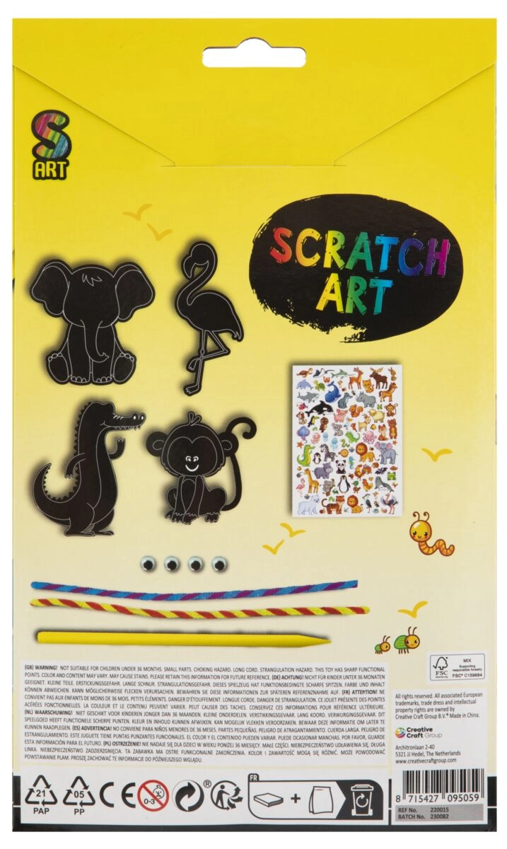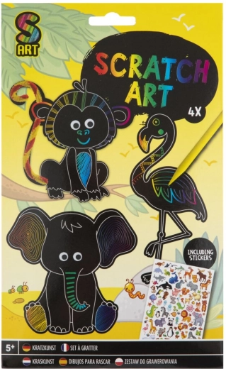 Ustvarjalni komplet, ki otrokom omogoča, da si izdelajo lastne praskankaste živalice. Komplet je odličen način za spodbujanje otroške ustvarjalnosti in hkrati ponuja zabavo.