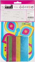 Ta ustvarjalni komplet vsebuje vse, kar potrebujete za izdelavo sijoče mozaike z motivom metulja. Dovolj je slediti barvnim označbam na predlogi in postopoma lepiti metalizirane penaste kvadratke na prava mesta. Rezultat je bleščeča slika formata A5, ki bo razveselila male ustvarjalce in starše.
