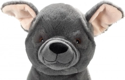 Ljubek plišasti kužek v slogu francoskega buldoga bo razveselil otroke in odrasle. Narejen je iz 100 % reciklirane plastike, nosi certifikat GLOBAL RECYCLED STANDARD in izstopa po visoki kakovosti ter zelo prijetnem materialu na dotik.