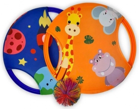 Zabaven komplet za otroke in odrasle, ki spodbuja koordinacijo gibov, reflekse in aktivno igro na prostem. Dve barviti loparasti tarči z veselimi motivi ter mehke pom‑pom žogice poskrbijo za veliko gibanja in veselja pri igri doma ali na vrtu. Varna izvedba za otroke od 3 let.