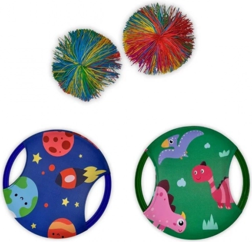 Odkrijte preprosto in nalezljivo zabavo za vso družino. Komplet za odbijanje vsebuje dva okrogla loparja z ročaji in mehke barvite pom‑pom žogice, ki jih je enostavno loviti in odbijati. Zahvaljujoč tekstilni površini in lahkemu plastičnemu okvirju je igra varna, intuitivna in primerna za začetnike.