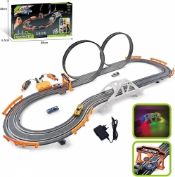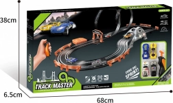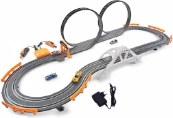Odkrijte izjemno dirkalno stezo, ki meri skupaj 520 cm in nudi dinamično in vznemirljivo zabavo za vsakega igralca. Set vsebuje dva avtomobila z možnostjo zamenjave karoserije, kar omogoča prilagoditev videza vozil po lastnih željah.