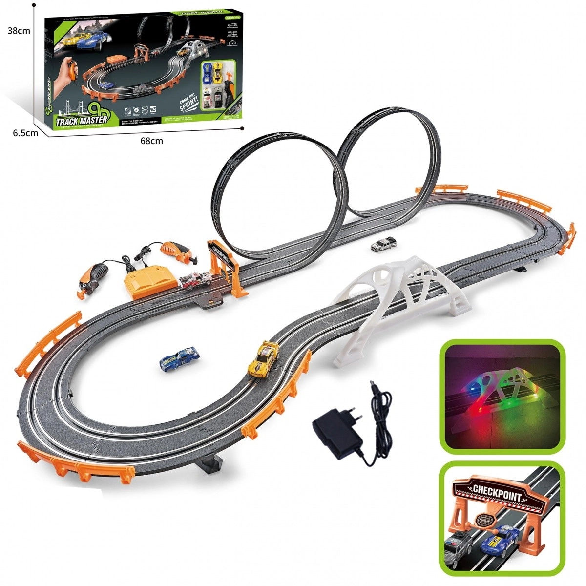 Dirkalna steza je izdelana v merilu 1:64, kar jo dela idealno izbiro za interaktivno zabavo otrok.
