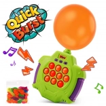 Med igro balon raste, dokler ne poči in se igra konča. Konzola je opremljena z zvočnimi učinki, ki dodajo dinamiko in energijo. Napaja se s tremi baterijami AAA (niso vključene) in vsebuje igro Pop-It, polnilni kabel ter set barvnih balončkov.