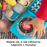 Vaš otrok lahko dirigira zabavi z interaktivno igračo Jak črke in besede podjetja Fisher-Price. Ko mali DJ pritisne 26 gumbov s črkami na DJ konzoli ali zavrti gramofon, se mikrofon ob ritmu veselih pesmi, zvokov in govorov o črkah ter prvih besedah razsvetli. Otroci lahko posnamejo vesela sporočila, DJ Jak pa jih zmiksa v izvirno pesem!