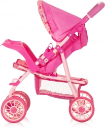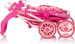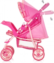 Sodoben voziček za punčke v igrivem rožnatem dizajnu ponuja otrokom realistično igro vlog. Zahvaljujoč velikim in dvojnim kolesom je vožnja gladka in stabilna, nastavljiva strešica ščiti punčko, naslonjalo za hrbet pa se zlahka nastavi od sedečega do ležečega položaja. Višinsko nastavljiv ročaj se prilagodi otrokovi postavi, zato je upravljanje vozička udobno.