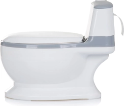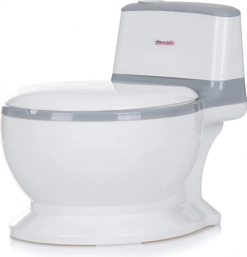 Kahlica Chipolino Lux Grey izgleda in deluje kot pravo stranišče, zato otrokom naravno pomaga osvojiti toaletne navade. Pristen zvok splakovanja motivira in prijetno popestri učenje, medtem ko mehko sedišče nudi udobje in občutek varnosti pri sedenju.
