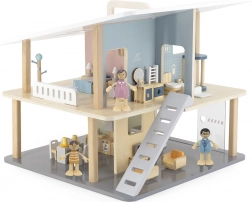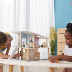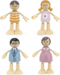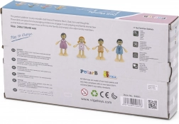 Tale modna, dvogeneracijska družinica v nežnih pastelnih barvah je odličen dodatek k vsem hišicam za punčke. Upogljive roke in noge figuricam omogočajo, da zlahka sedijo, stojijo ali držijo predmete, zato si lahko otroci ustvarjajo lastne prizore iz vsakdanjega življenja. Kakovostna lesena izdelava in skrbni detajli zagotavljajo dolgo življenjsko dobo in varno igranje.