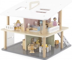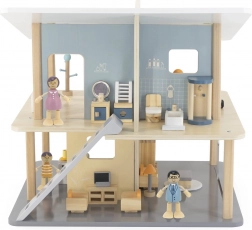 Komplet se odlično prilega večini lesenih hišic za punčke in igro obogati z vsakodnevnimi situacijami. Otroci urijo komunikacijo, empatijo in pripovedovanje zgodb.
