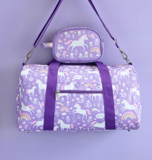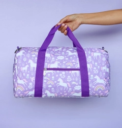 Otroška potovalna torba zasnovana za maksimalno udobje in funkcionalnost. Opremljena je z dvema ročajema in enim odstranljivim ramenskim trakom, kar omogoča udobno nošenje. Prostoren glavni predal dopolnjujejo dodatni žepi, dva stranska žepa in sprednji predal z zadrgo, ki zagotavljajo dovolj prostora za vse, kar vaš otrok potrebuje. Torba je idealna tako za športne krožke kot za družinske izlete, in se lahko uporablja tudi kot ročna prtljaga na letalu. Material torbe je lahek, trden in ima vesel motiv samorogov in mavrice.