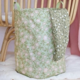 Okrasite svoj dom s to košaro z čudovitim cvetličnim vzorcem na žajbljevo zeleni podlagi.