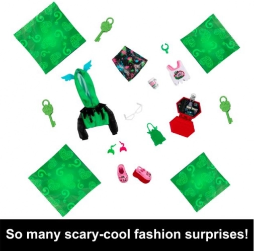 Punčka ima izrazito barvite lase in ličila, z zahvaljujoč popolni sklepni gibljivosti pa zlahka zavzame katerikoli položaj. Omarica v obliki krste služi kot kulisa za pripovedovanje zgodb ter kot praktično shranjevanje in prenašanje. V pakiranju najdete več kot 19 presenečenj, s katerimi ustvarite več kot 125 kombinacij oblačil.
