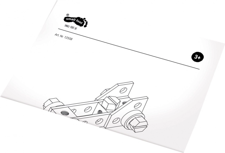 Kladivce, izvijač, ključ, žagica, vijaki, matice, zobniki in ploščice – vse, kar mali mojstri potrebujejo za ustvarjanje in prve projekte.