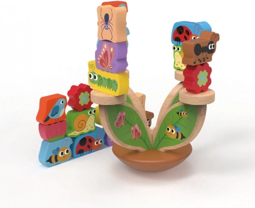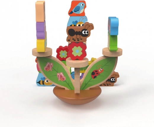 Lesena balančna igra Travnik spremeni učenje v zabavo. Otroci izmenično polagajo pisane delčke na stabilno osnovo v obliki listov in poskušajo ohraniti ves travnik v ravnovesju. Igra naravno razvija fino motoriko, koordinacijo oko–roka in logično razmišljanje, hkrati pa trenira potrpežljivost in zbranost.