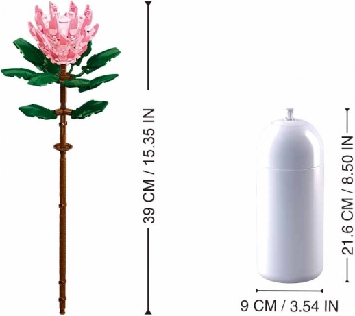 Ta kreativna sestavljanka SLUBAN Flowers vas popelje v svet eksotičnih rož. Protea – pogosto imenovana »kraljica cvetja« – izstopa z izrazitimi barvami in učinkovito obliko, ki po sestavi deluje kot luksuzna dekoracija. Zahvaljujoč trpežni ABS plastiki je model odporen in dolgoročno ohranja obliko.