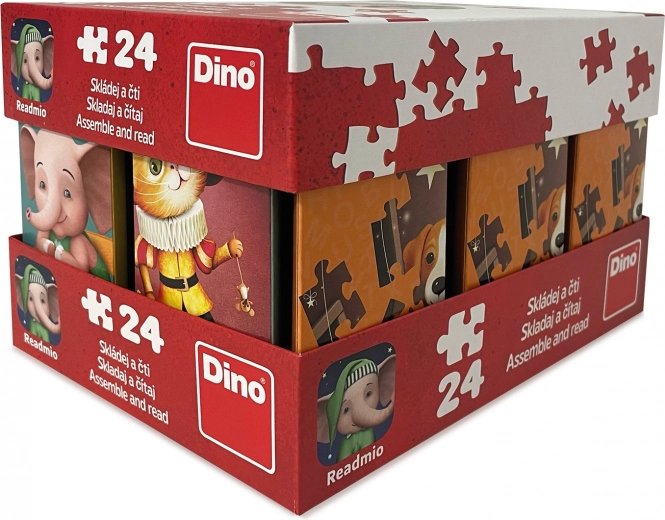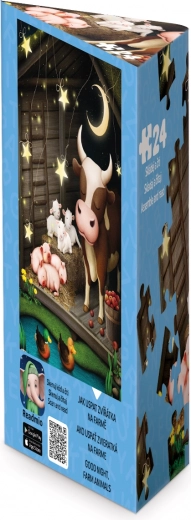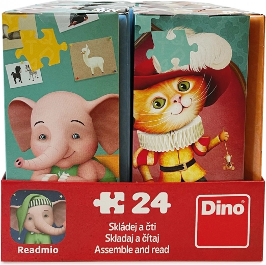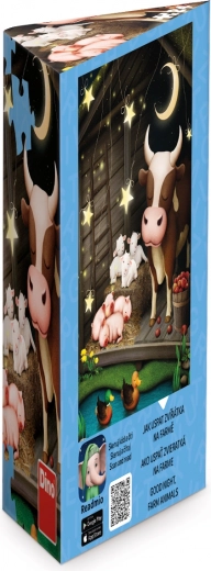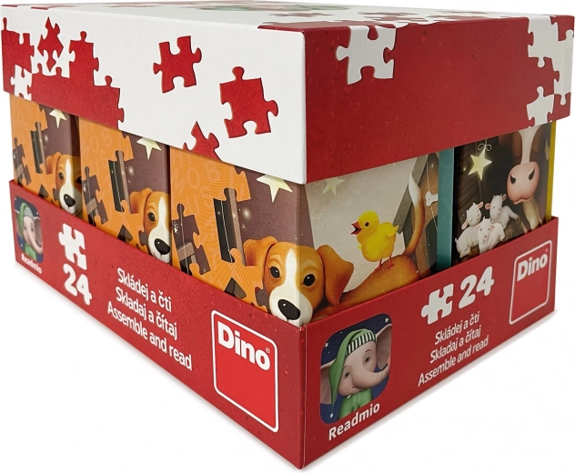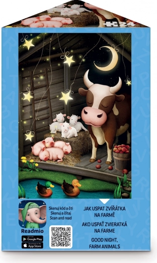 Sestavljanka Dino Živali na kmetiji otrokom prinaša veselje ne le ob sestavljanju, temveč tudi ob pravljičnih zgodbah z aplikacijo Readmio. Po sestavitvi slike iz 24 koščkov lahko s pomočjo QR kode naložite pravljico, ki jo lahko poslušate ali sami preberete z zvočnimi učinki.
