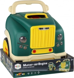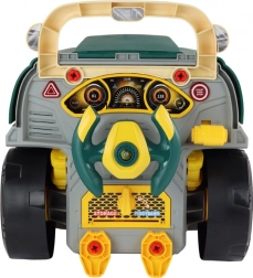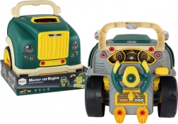 Ta otroška montažna delavnica v obliki zelenega kamiona združuje igro in učenje v enem. Otroci lahko odvijejo kolesa, odprejo pokrov motorja in raziskujejo motor, pri čemer vadijo koordinacijo rok in potrpežljivost. Interaktivna armaturna plošča z volanom, hupo, gumbom start/stop, opozorilnim gumbom in preklopnikom »prestav« prinaša realistično izkušnjo vožnje.