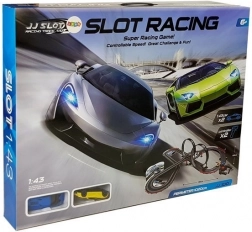 To orjaško slotcar dirkališče bo navdušilo vse ljubitelje hitrosti. Zahvaljujoč dvema zankama, dinamični postavitvi in ostrim zavojem je vožnja vedno napeta. Avtomobilčki v merilu 1:43 imajo sprednje LED luči, zato so dirke odlične tudi pri slabši svetlobi.