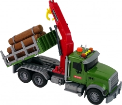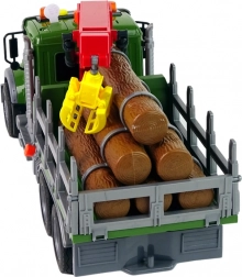 Ta podrobno izdelano tovorno vozilo s prikolico in funkcionalnim žerjavom otrokom omogoča realistično nakladanje in razkladanje lesenih hlodov. Zahvaljujoč svetlobnim in zvočnim učinkom (hupa, vzvratna vožnja, opozorilo) je igra še bolj pristna in zabavna za dolge ure.