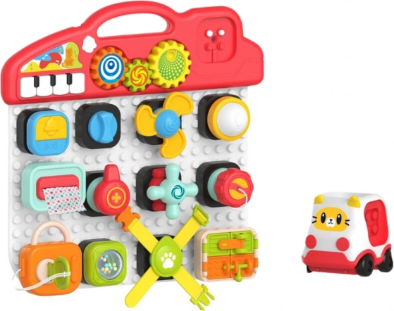 - Raznoliki elementi za raziskovanje: Set vključuje dele, ki jih je mogoče vrteti, pritiskati in odpirati, kar podpira otrokove kognitivne sposobnosti z raznolikimi oblikami, teksturami in barvami.