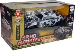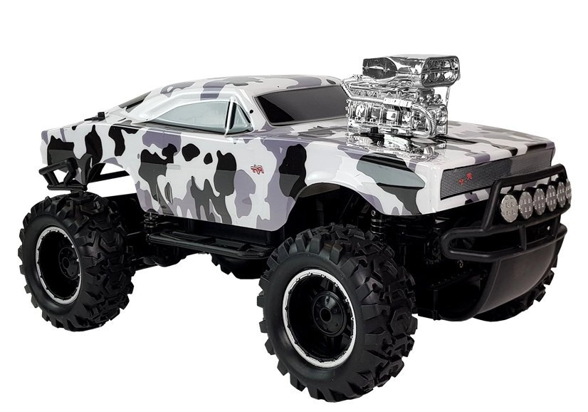 Dirkalni terenski avto na daljinsko upravljanje 4x4 belo-črn je idealna izbira za vsakega ljubitelja terenskih dogodivščin. Ta podrobno izdelan avto v odličnem videzu in merilu 1:10 ponuja realističen doživetje pri vsaki vožnji.