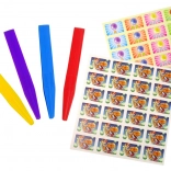 - igralna plošča, kletka/vrata, figurica dinozavra, 24 kart, barvita jajčeca (več barv), 4× pinceta