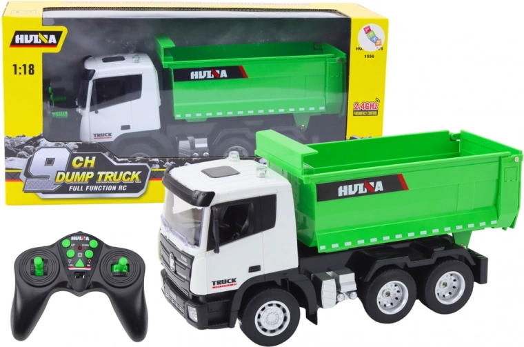 Zeleni daljinsko upravljani tovorni tovornjak v merilu 1:18 ponuja realistično zabavo na gradbišču za vsakega malega graditelja. Ta model omogoča prevoz razsutih materialov in gradbenih potrebščin z daljinskim upravljanjem.