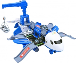 Po razložitvi se letalo spremeni v mobilno policijsko postajo z rampami, odlagalnimi prostori in platformo za “izstrelitev” avtomobilčka za hiter posredovalni odziv. Del kompleta so 3 policijska vozila, vrtljivi žerjav 360° z upravljalnim kolescem ter set znakov, stožcev in drugih dodatkov za gradnjo lastnega mesta in cest.