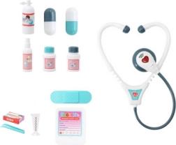 Poleg stetoskopa set vsebuje tudi injekcijsko brizgo, skalpele, kartico pacienta in številne druge pripomočke ter dodatke. Vsak element seta je skrbno zasnovan za največjo varnost in udobje malih uporabnikov.