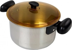 Lonec, ponev in druga posoda so izdelani iz nerjavnega jekla, ki posnema pravo kuhinjsko opremo.