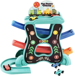 Zabavna izobraževalna avtomobilska steza za najmlajše navdušence nad avtomobili ponuja tri nivoje spustov in do 7 barvnih avtomobilčkov. Premišljena zasnova spodbuja koordinacijo oko–roka, logično razmišljanje in koncentracijo. Trpežna izdelava in žive barve zagotavljajo dolge ure radostne igre doma in v vrtcu.